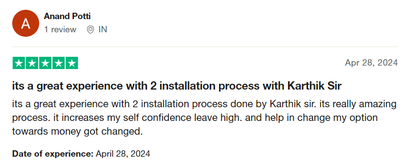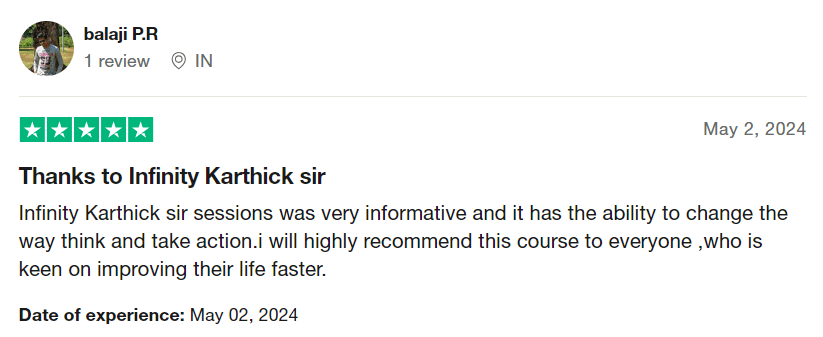 "Low energy and lack of focus were major hurdles in achieving my revenue goals. I often found myself unable to concentrate during important client meetings, which affected my business growth. Implementing the method taught to us by Infinity Karthik changed everything. I now have the energy and clarity to drive my business forward and have finally reached my desired revenue targets. It's amazing what doubling your energy can do for your business.”